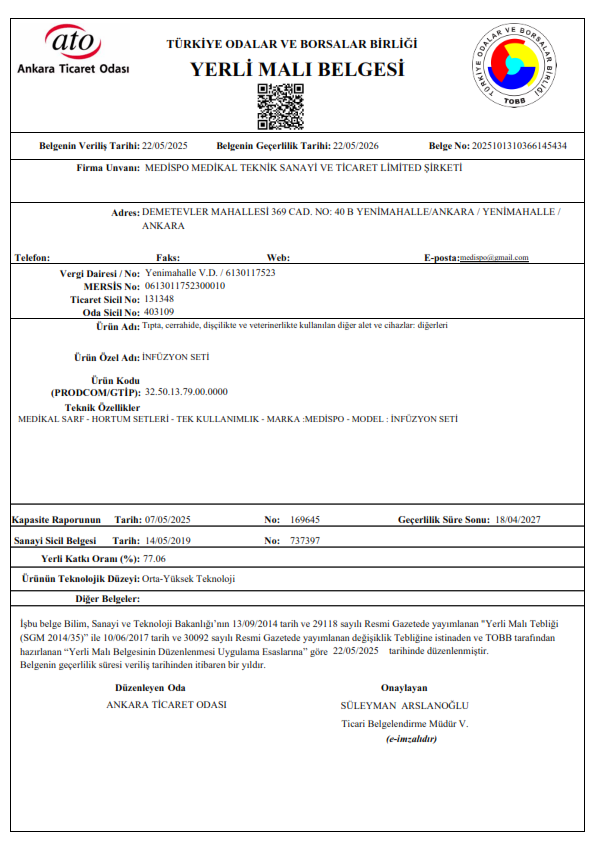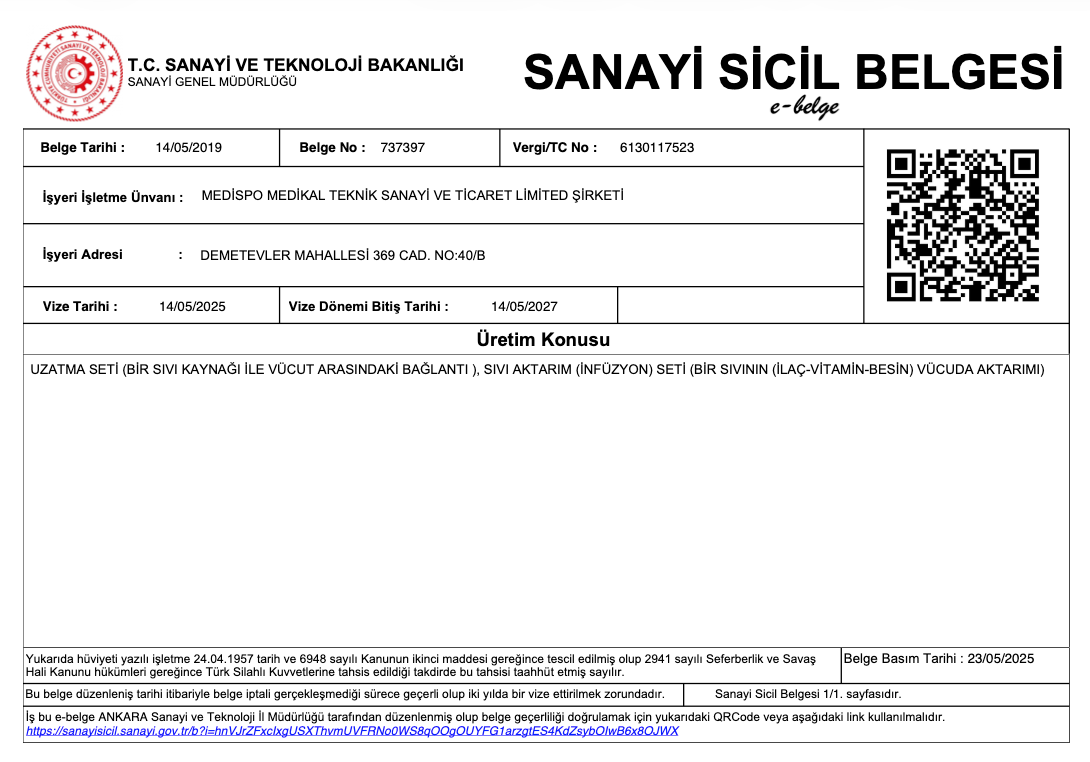 MEDİSPO, which has focused on in the field of disposable medical products and medical device design since 1997, manufactures with its own brand in EN ISO 13485 standard. All product groups are authorized to CE brand.